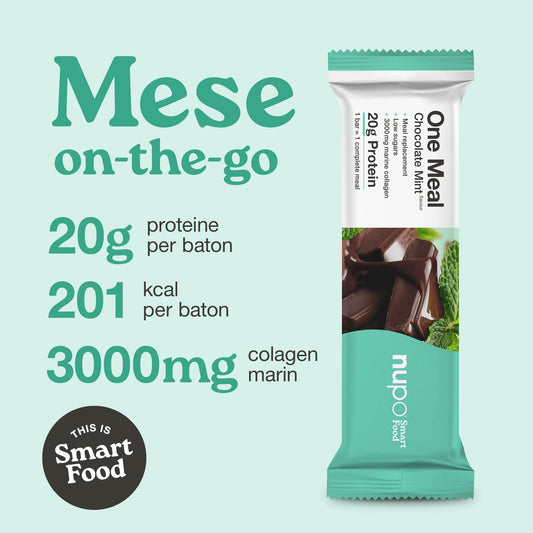 Batonul de slăbit Nupo One Meal înlocuiește comod, rapid și sănătos o masă. Pe lângă gustul foarte plăcut, are din punct de vedere nutritiv, o compoziție completă și corectă, fiind recomandat atât pentru pierderea în greutate, cât și pentru controlul greutății, dar și menținerea unui stil de viață sănătos. Shake-urile, batoanele și clătitele Nupo One Meal sunt ideale pentru zilele încărcate sau după antrenament, pentru a ține sub control aportul de calorii.
